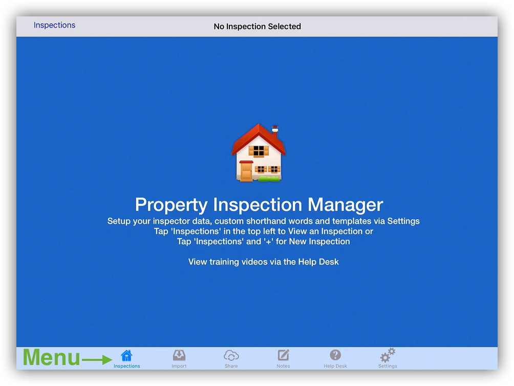 - Inspections - For creating, modifying, previewing and submitting your inspections. (See How To Guides - Inspections). Please also see the last section of this guide for display options in the Inspection Menu.