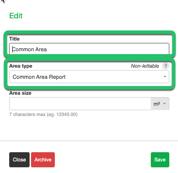 | Step 1: If you haven't already created an Area Type called "Common Area Report", then you need to create one. Refer to First Time Setup in Released. Step 2: Ensure you have a Common Area you wish to inspect listed under the property areas. You can create new ones by navigating to Properties (1) then tap Areas (2) then tap + New Area (3) (this presents the form below). Enter the Title of your new Common Area then select the Area Type as Common Area Report (set up in a previous step) then hit Save. ![]() ![]() Step 3: You can then schedule an inspection against the Property Common Area by tapping Property then tap Tasks then tap "+ New Inspection" (this presents the screen below) select the Area of the Property as your Common Area (as setup in Step 2 above). No Tenancy field is required when scheduling these types of inspections. ![]() Extra Notes: Re-Leased will show a Tenancy Inspection and a Common Area Report Inspection as below: ![]() These will display in PIM the Import screen as below, NOTE: the highlighted areas show the Property Types assigned to the inspection in Re-Leased and how they will import into PIM. |