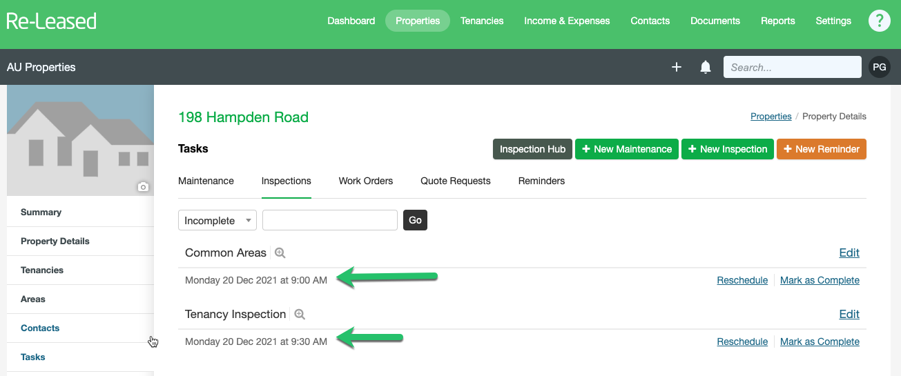 Thanks to our integration with Re-Leased, you can import confirmed inspections directly into PIM, complete with relevant property information and tenant details.
