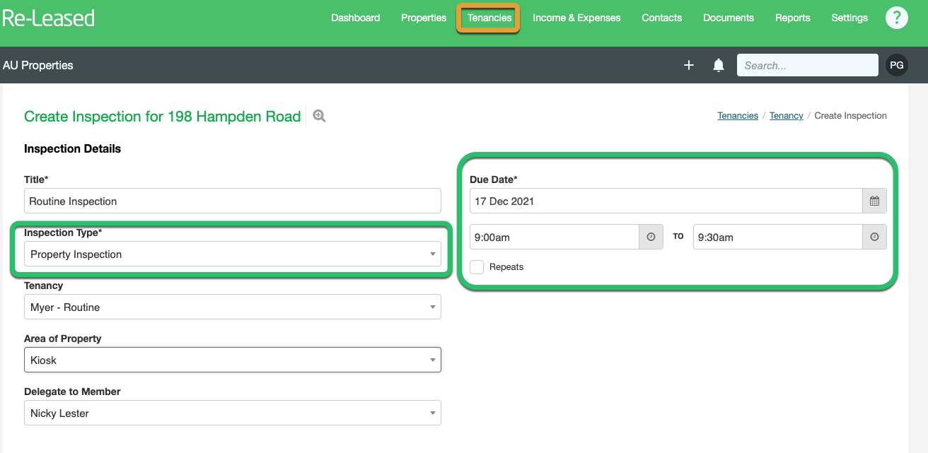 | 1. Scheduling Inspections Against a Tenancy |