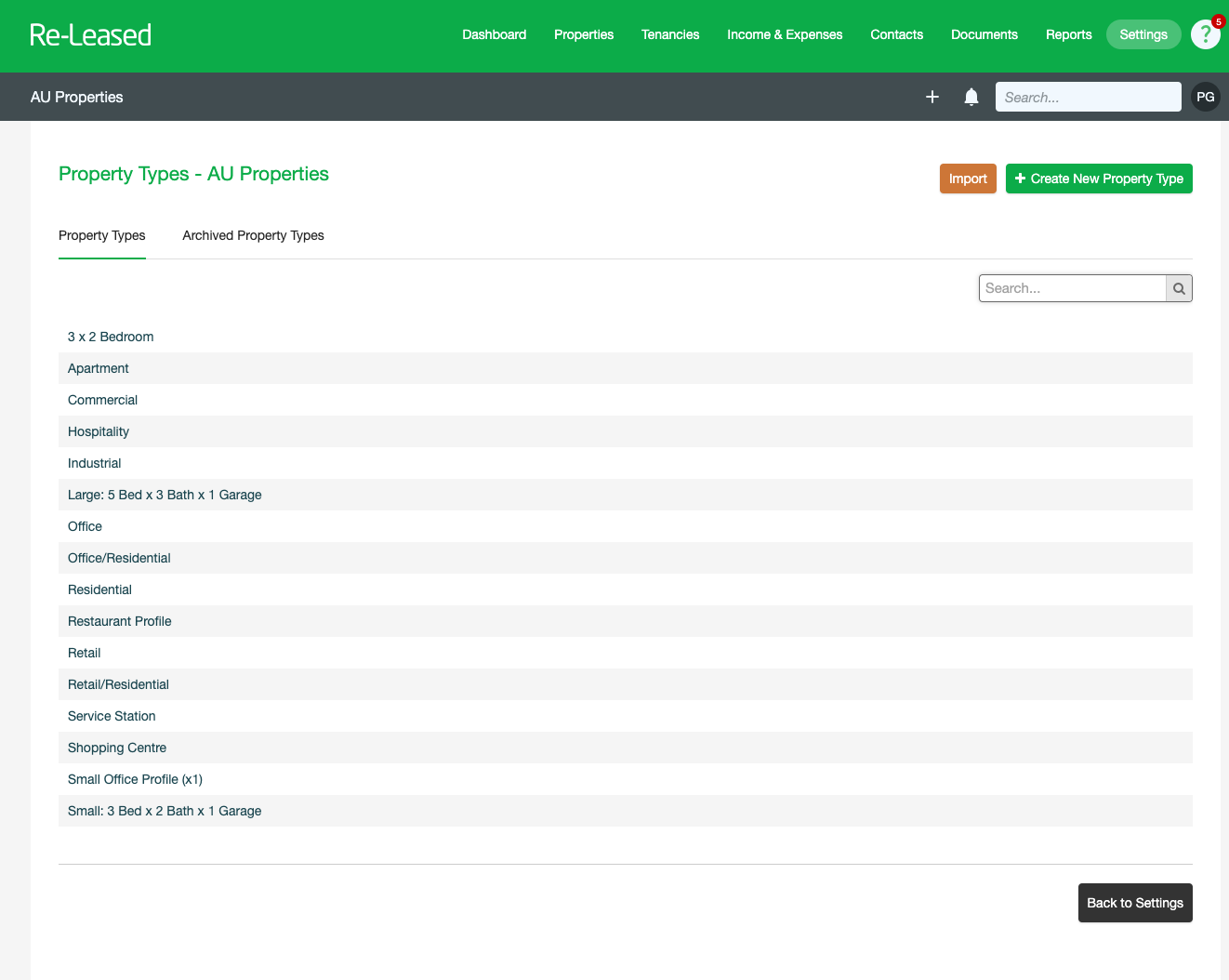 | 1. Review your Property Types in Re-Leased |