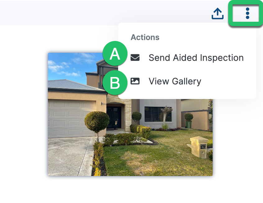 The Actions button allows you to send Aided Inspections and also view your Media Gallery.
